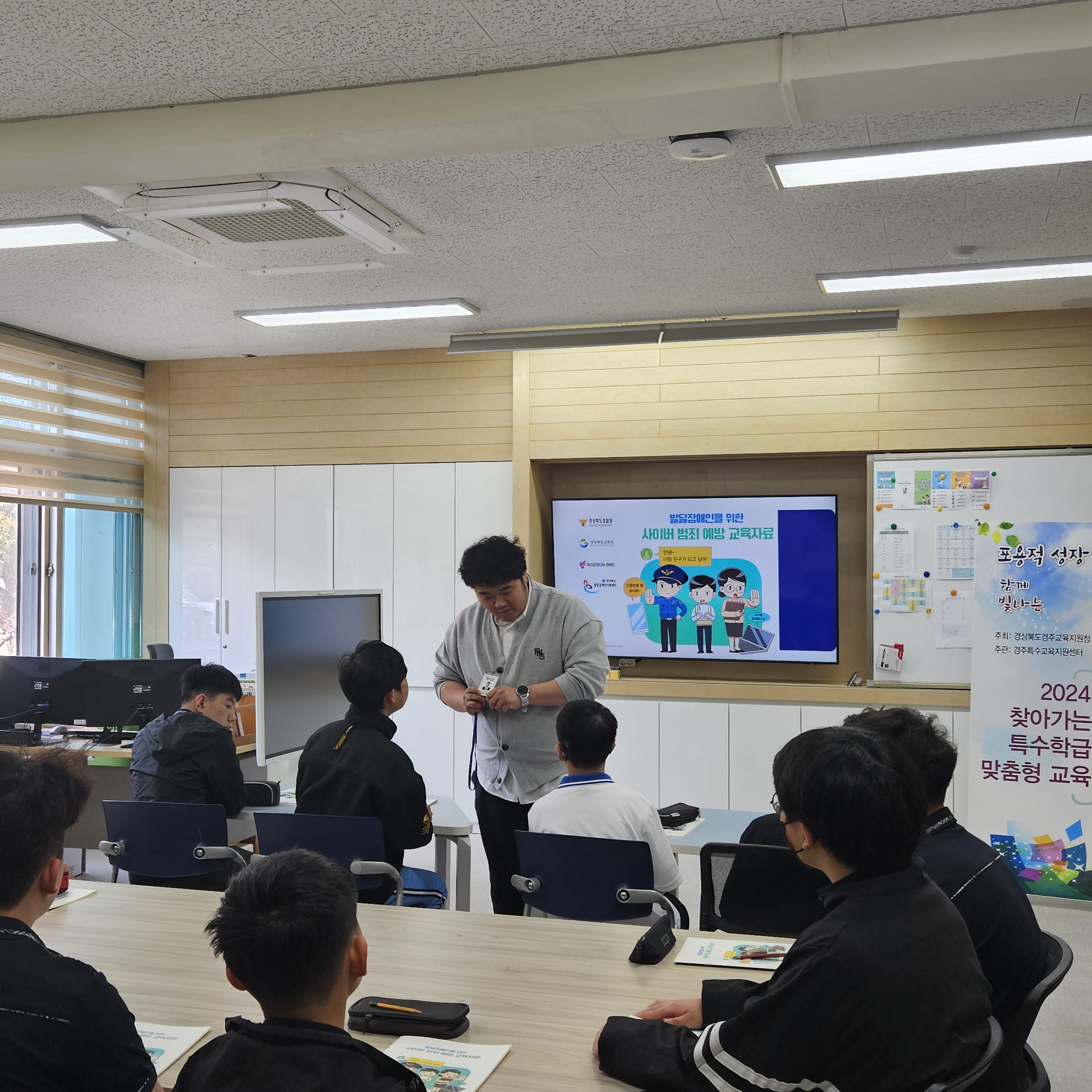 경주교육지원청(권대훈 교육장)특수교육지원센터는 지난 4월 30일(화) 신라중학교에서 특수학급 학생 11명을 대상으로 ‘찾아가는 사이버범죄 예방교육’을 실시했다고 밝혔다.
