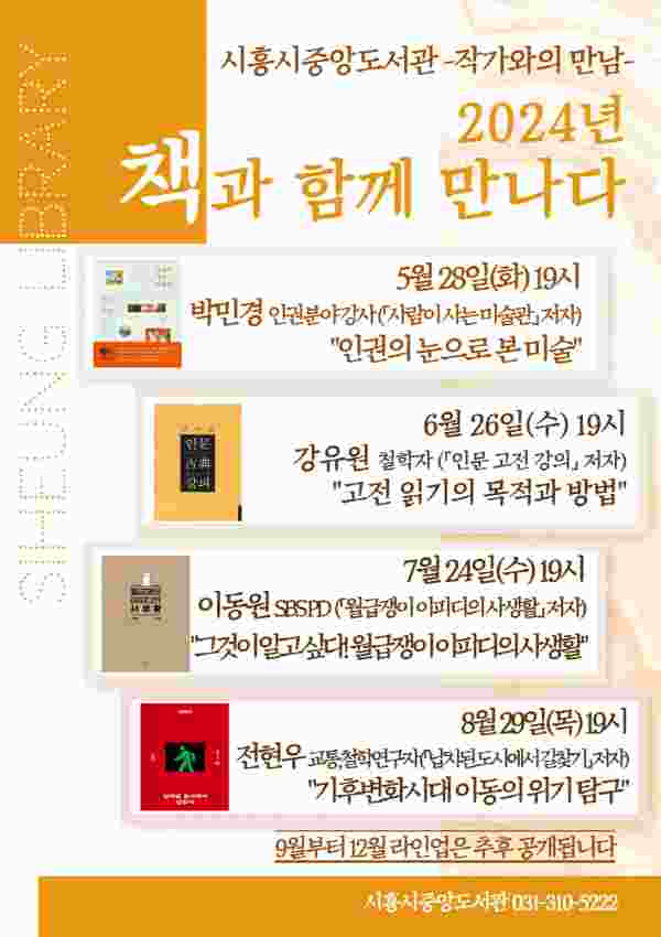 [금요저널] 시흥시중앙도서관은 시민들이 작가와 직접 만나고 소통하는 기회를 제공해 독서의 흥미를 높이고자 ‘2024년 책과 함께 만나다’ 사업을 운영 중이다.