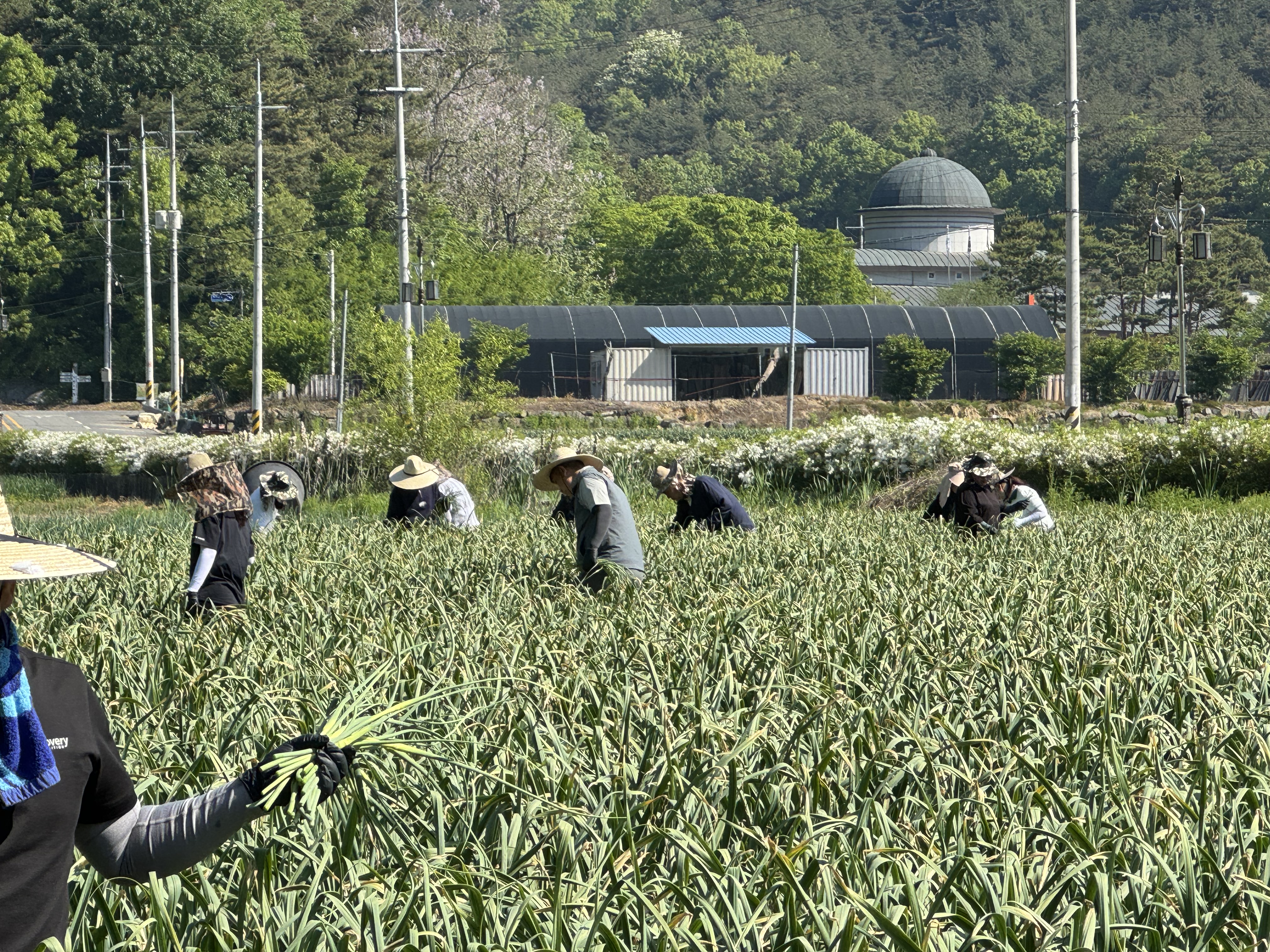 이날 봉사활동은 일손 부족으로 어려움을 겪고 있는 지역 농가에 힘을 보태고자 마련되었으며 농가에 피해가 가지 않도록 조심하며 마늘쫑 수확에 구슬땀을 흘렸다.