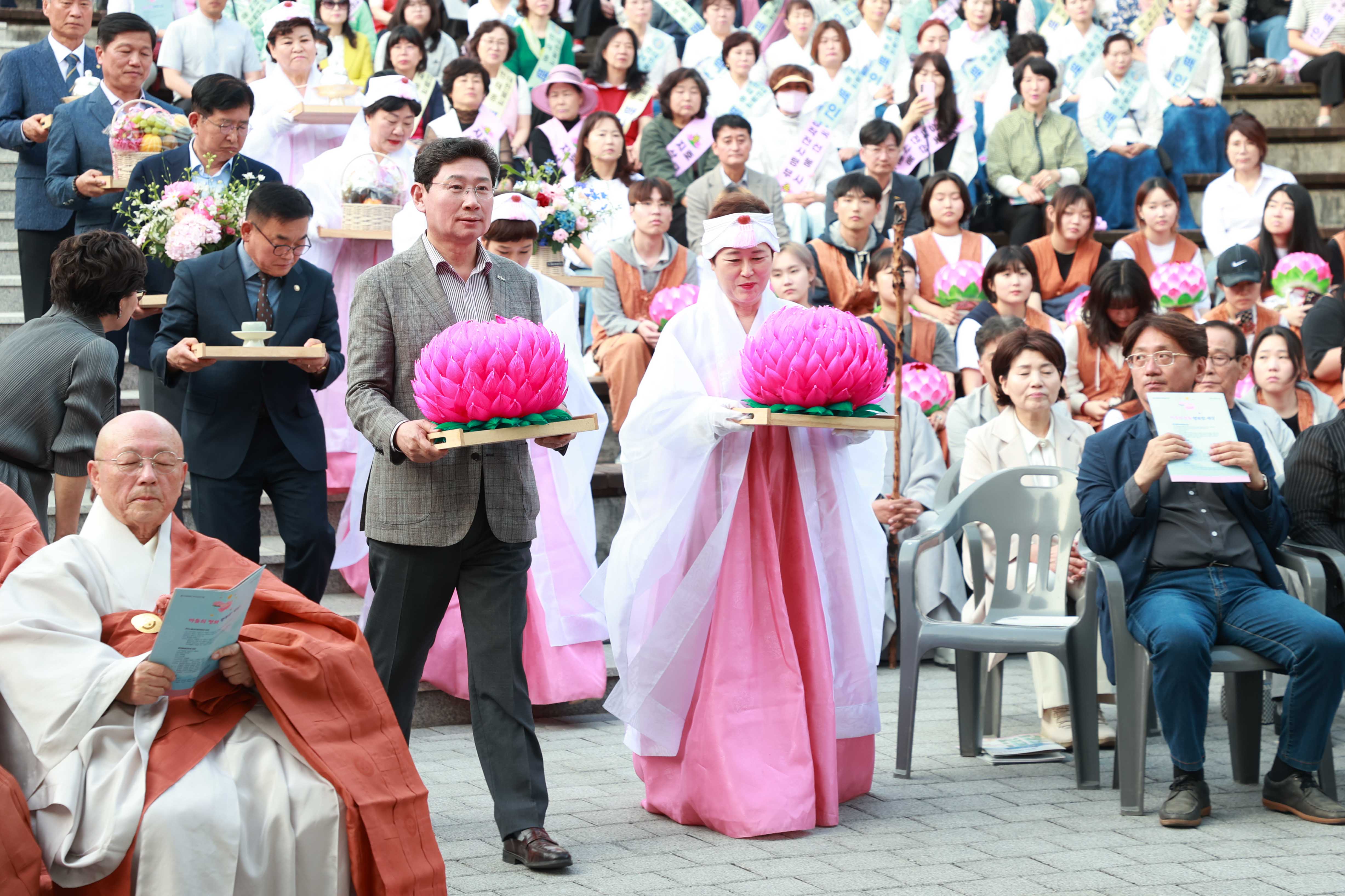 이상일 시장은 시청 야외음악당에서 열린 법요식에서 향·등·꽃·과일·차·쌀 등 여섯가지 중요한 공양물을 부처님께 올리는 육법공양 의식에 참여하고, 헌화를 했다.