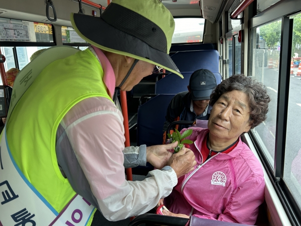 이번 행사는 승하차도우미 20명이 참여했고 버스를 이용하는 어르신들에게 카네이션을 달아드리며 어버이의 은혜에 감사하는 마음을 전했다.
