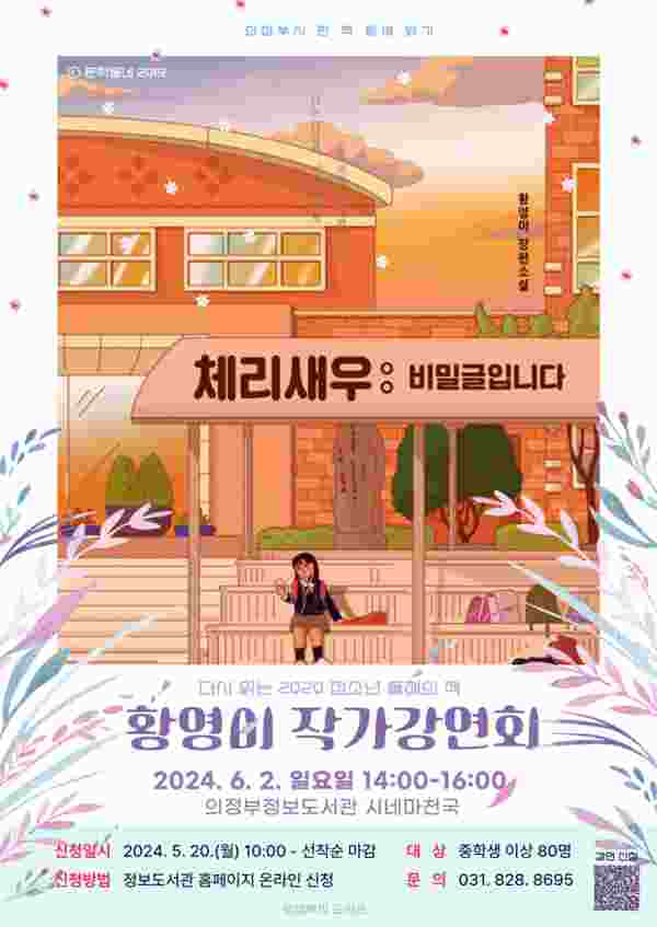 [금요저널] 의정부정보도서관은 ‘다시 읽는 의정부시 올해의 책’의 일환으로 6월 2일 오후 2시 ‘체리새우:비밀글이다’ 황영미 작가강연회를 연다.
