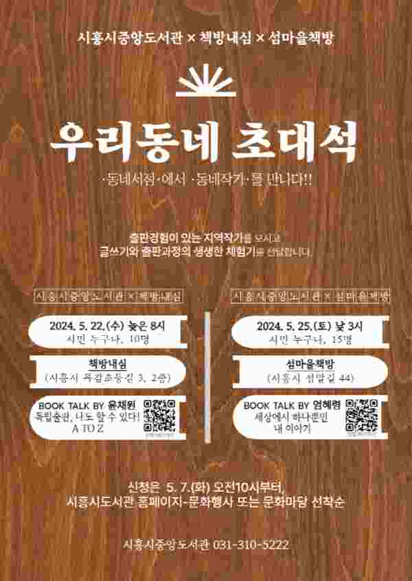 아늑한 서점 공간에서 펼쳐지는 색다른 만남에 참여하고 싶다면 시흥시도서관 누리집의 문화행사를 참고해서 신청하면 된다.