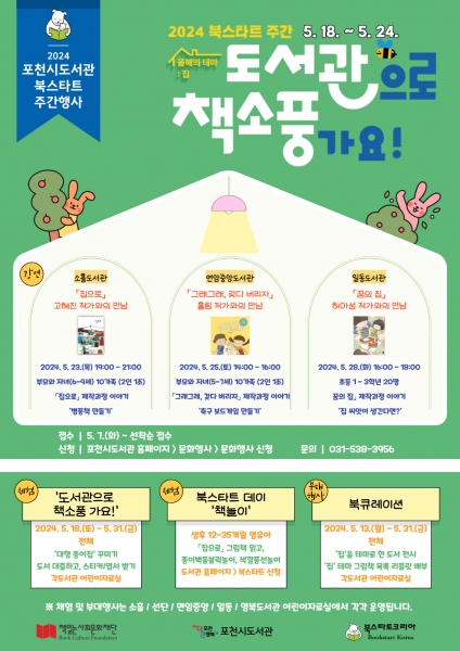 이에 소흘, 선단 면암중앙, 일동, 영북 등 포천시도서관 5개소에서는 ‘도서관에 책소풍가자’라는 슬로건 아래 5월 한 달간 다양한 독서문화프로그램을 운영한다.