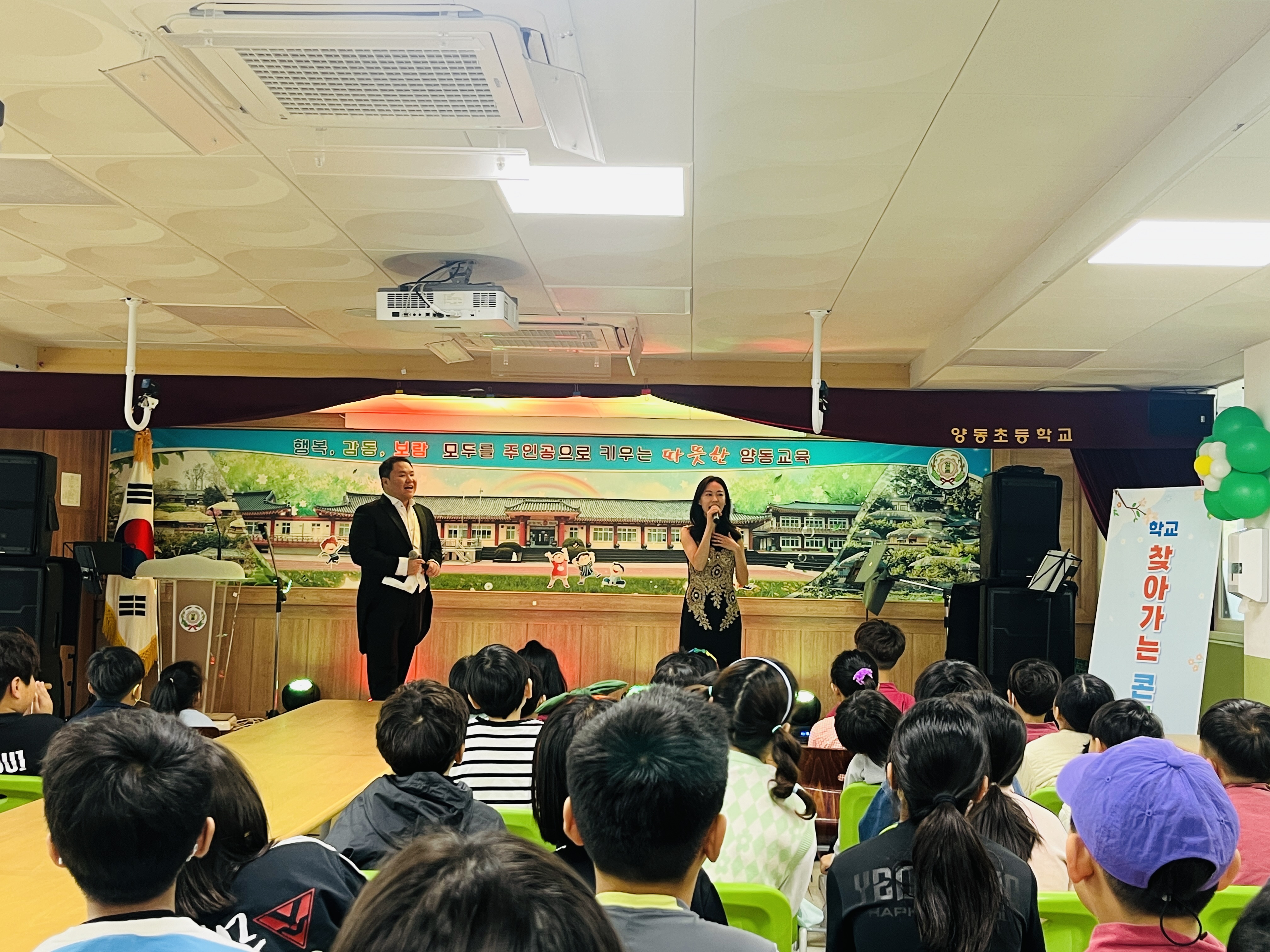 5월 8일(수), 양동초등학교(교장 백춘복)에는 마음을 울리는 따뜻한 클래식 음악이 가득 울려 퍼졌다. 올해 「문화예술체험활동 공모 사업」에 선정된 양동초등학교는 예술의 다양성 교육을 통한 학생들의 창의성 및 정서를 함양하고 정통 공연 관람의 기회를 제공하고자 “클래식 콘서트”를 열었다.