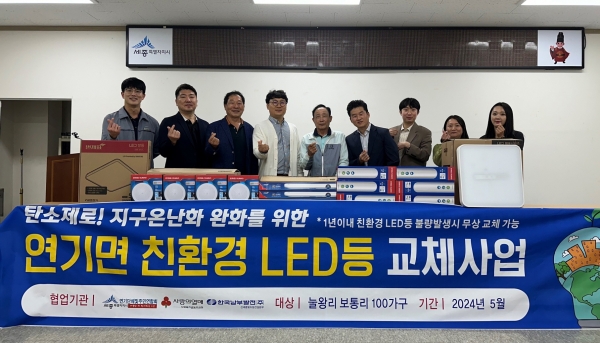 [금요저널] 세종시 연기면이 한국남부발전㈜ 신세종빛드림건설본부, 연기단체 및 주민연합회와 함께 눌왕리·보통리 마을 100세대에 친환경 LED등 교체를 지원한다.
