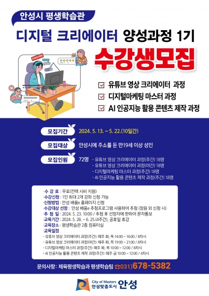 안성시, 디지털 크리에이터 양성과정 1기 수강생 모집