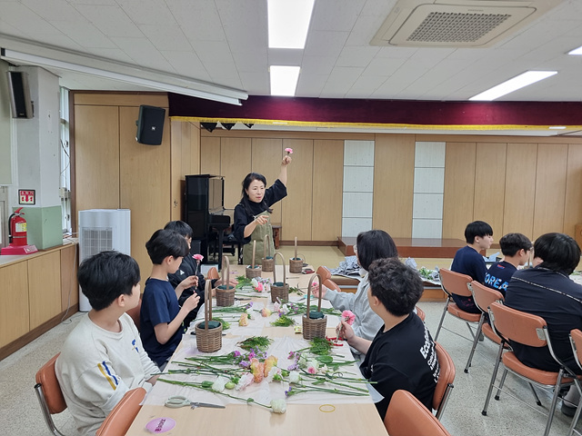 □ 경북 고령군 쌍림중학교(교장 최유미)는 5월 7일(화)에 전교생과 전교원을 대상으로 ‘사제동행 진로체험’활동을 실시하였다. ‘플로리스트 직업’에 대한 여러 가지 정보를 탐구하면서 ‘어버이날’을 맞이하여 카네이션 꽃바구니를 만들었다.