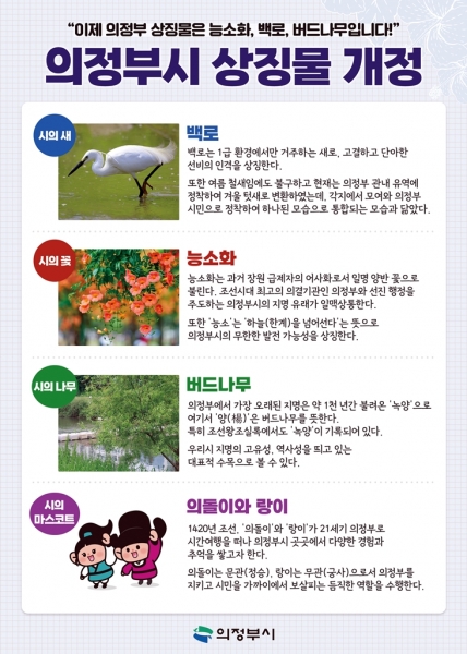 시는 이 같은 내용을 담은 ‘의정부시 상징물 관리 조례 개정조례안’을 시의회 의결을 거쳐 5월 14일 공포했다.