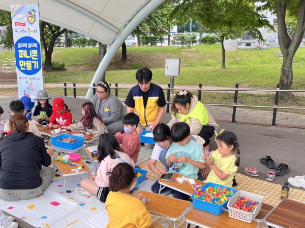 이 날 팝업놀이터에는 천사점토와 퍼니콘을 이용한 작품 만들기, 분필을 이용한 다양한 바닥놀이, 캐치볼 던지기, 숨은 보물찾기 등 다양한 놀이가 진행됐으며 ㈜도너랜드의 천사점토 및 퍼니콘 후원을 통해 더욱 즐겁고 풍성한 놀이터로 운영될 수 있었다.