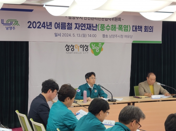 지난 13일 시는 시청 여유당에서 재난안전대책본부 차장인 홍지선 남양주시 부시장 주재로 ‘2024년 여름철 자연재난 대책 회의’를 개최했다.