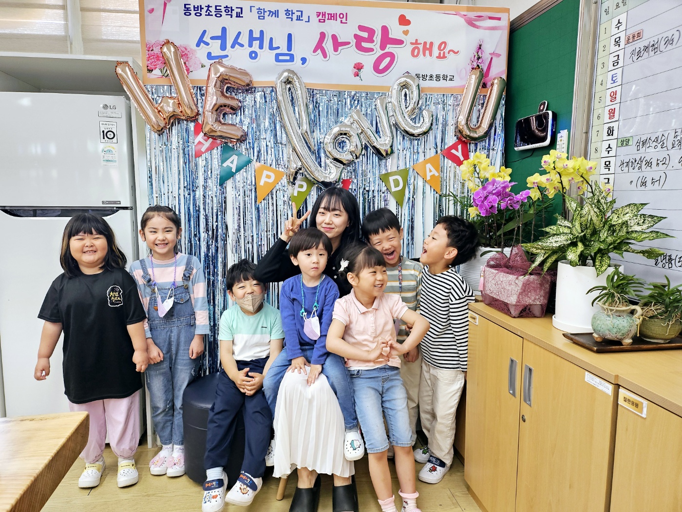 365일 행복한 학교 만들기 일환으로 2024. 5. 14.(화) 동방초등학교(교장 박춘길)는 학생자치회와 함께하는 「선생님, 사랑해요, 도전 챌린지!」 스승의 날 기념 행사를 가졌다.