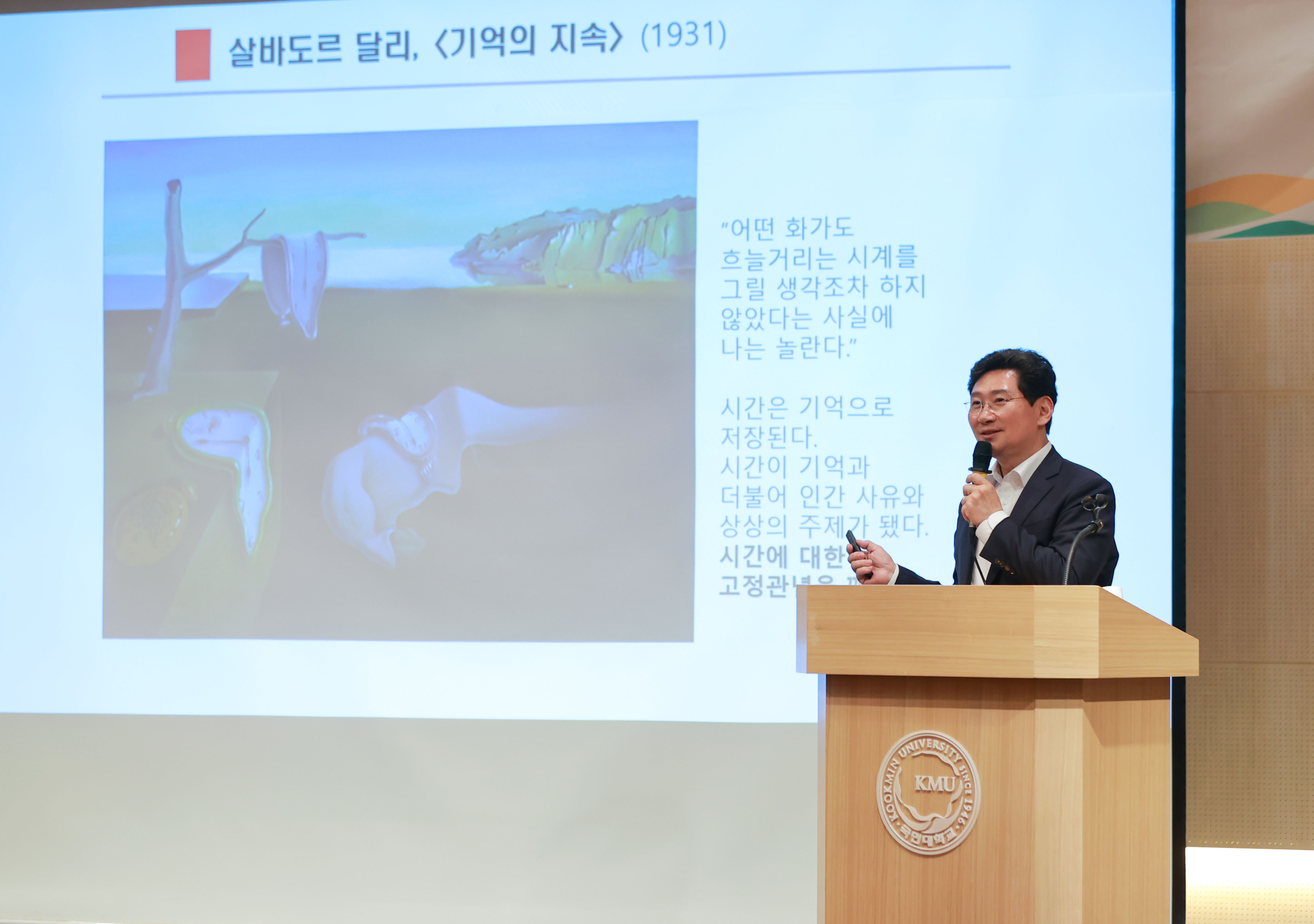 이 시장은 “이중그림 ‘베르툼누스의 모습을 한 루돌프 2세’를 그린 로마 궁정화가 주세페 아르침볼도와 ‘기억의 지속’이라는 작품으로 녹아내리는 시계를 그린 살바도르 달리의 작품도 창의성이 돋보인다”며 관련 그림들을 소개했다. 그러면서 “이들 화가처럼 유연하고 창의적인 사고를 하려고 노력하는 것도 좋은 리더의 조건이 아닐까 싶다”고 말했다.