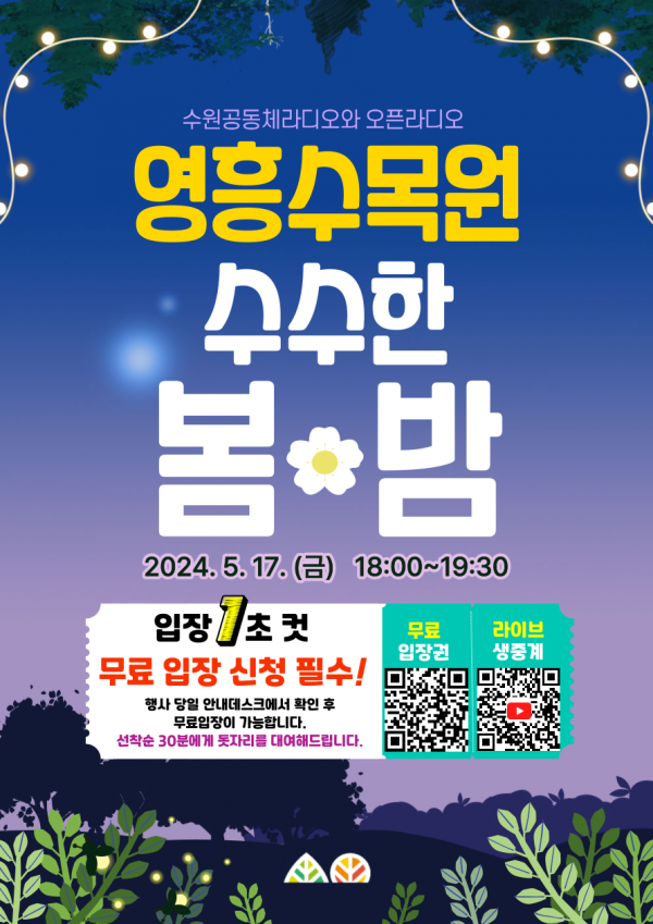 17일 오후 6시 영흥수목원 잔디마당에 ‘수수한 봄-밤’의 시작을 알리는 ‘수수한 봄-밤 오픈라디오’ 행사를 영흥수목원에서 연다.