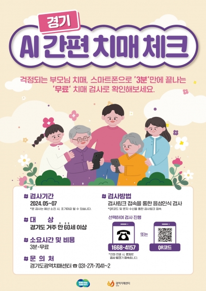 ‘경기 AI 간편 치매체크 서비스’는 인공지능을 활용한 검사로 스마트폰으로 1분간 말하기를 통해 치매 위험도를 확인하는 방식이다.