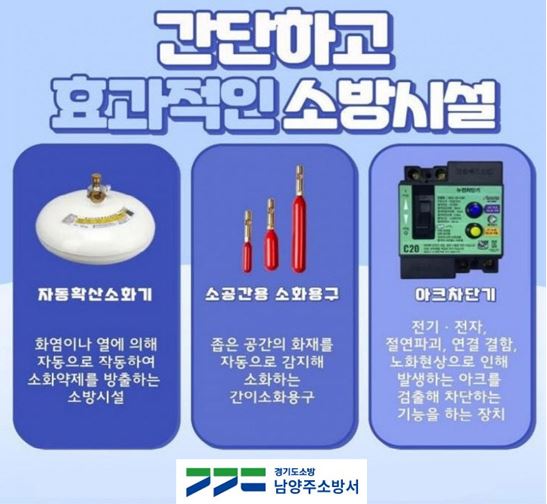 [금요저널] 남양주소방서는 16일 봄철 화재예방대책으로 자동확산소화기, 소공간용 소화용구, 아크차단기 등 설치에 홍보를 나섰다.
