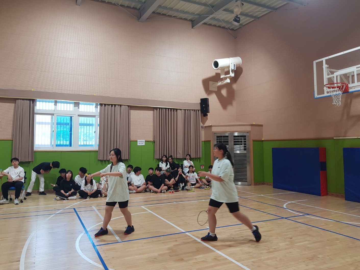 ■ 배드민턴 교류전은 4개 학교에서 남 복식 1팀, 여 복식 1팀, 남녀혼합복식 1팀씩 학교대표로 참여하여 학교스포츠클럽 배드민턴 단체전이 진행되었다. 대표로 참가한 학생들은 경기예절을 잘 지키고 최선을 다하는 모습을 보여주었고, 관중석에서는 각 학교가 이기기를 바라는 응원의 목소리와 힘찬 함성이 가득했다. 이날 경기는 승부는 났지만 순위를 가리지는 않고 학교간 친선도모와 교류의 목적을 우선으로 치러졌다.