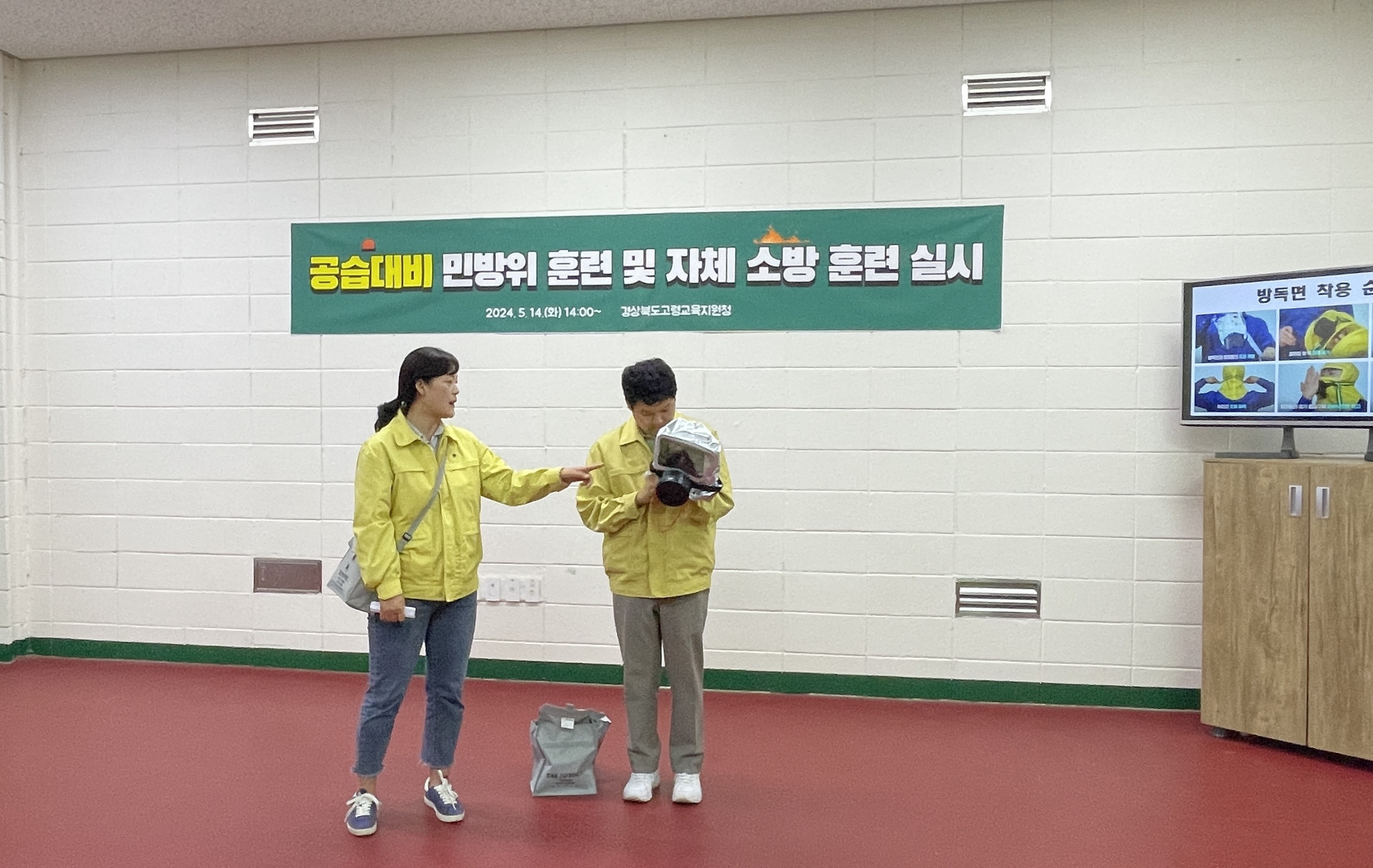 경상북도고령교육지원청(교육장 김호상)은 5월 14일(화) 14시 공습 대비 민방위 훈련 및 자체 소방 훈련을 실시했다. 이번 민방위 훈련은 적 공습 대비를 목적으로 진행되었고, 자체 소방훈련은 고령교육지원청 본관 건물에서 화재 발생 상황을 가정하여 실시했다.