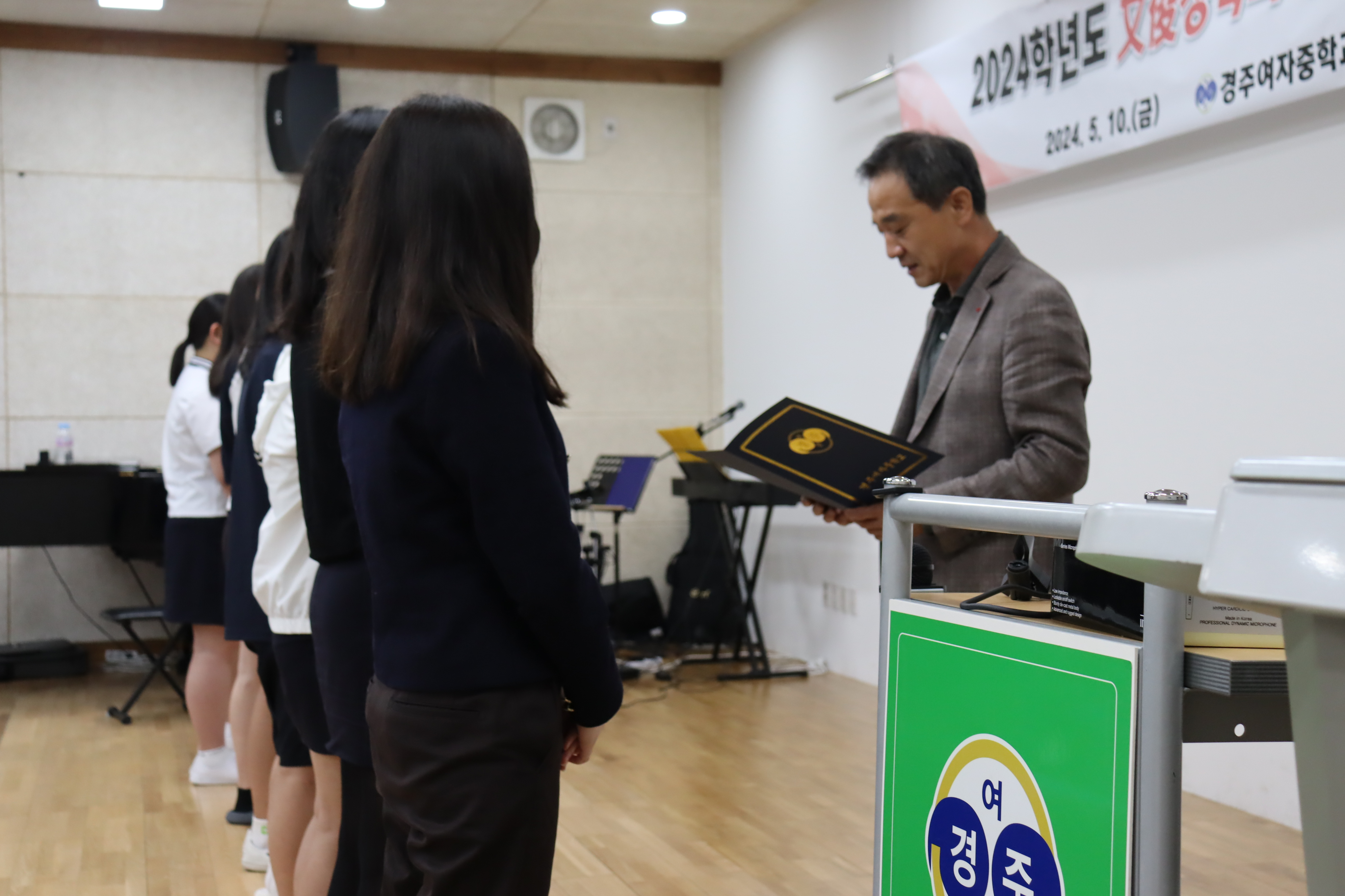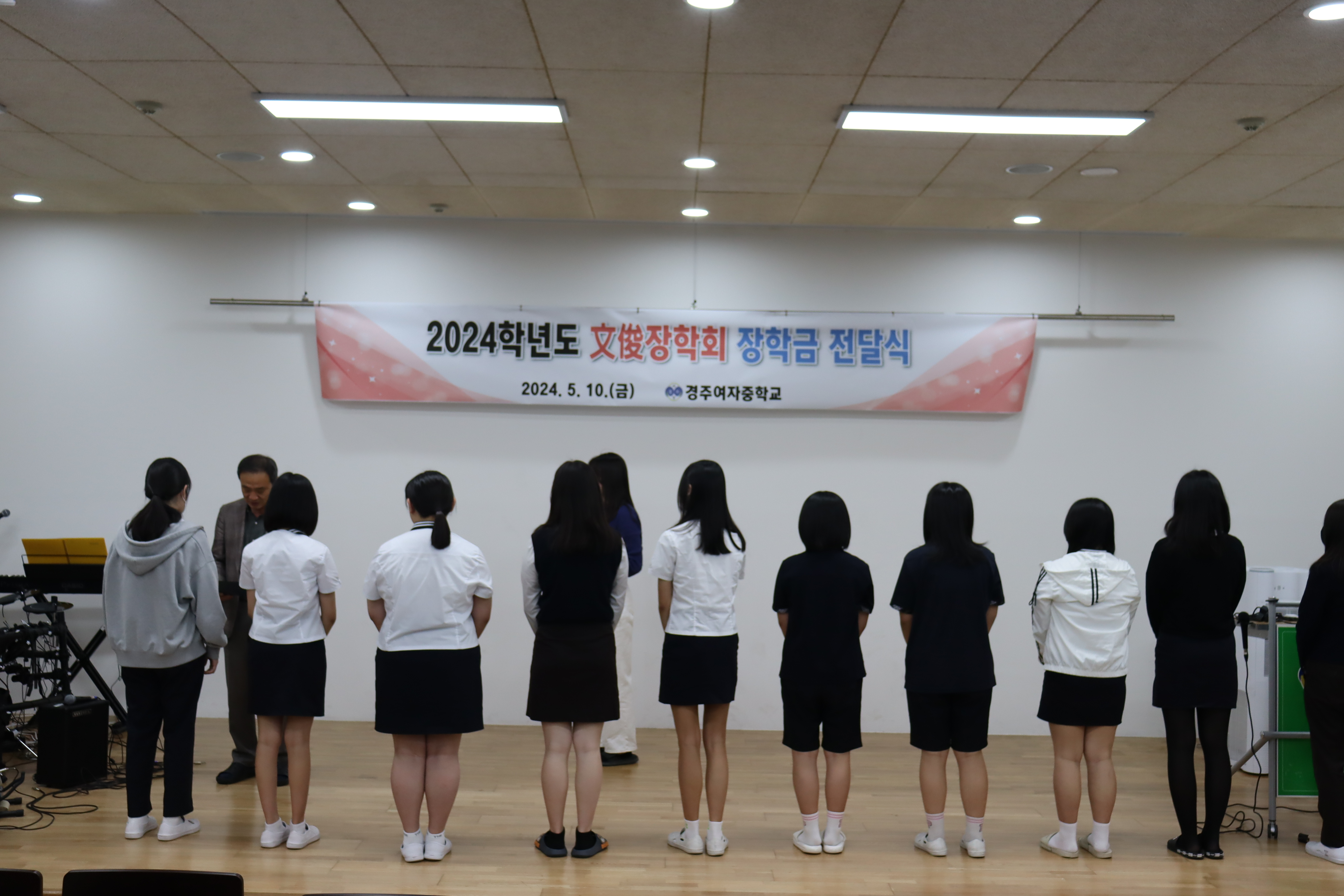 □ 경주여자중학교(교장 민훈)는 2024년 5월 10일(금) 1학년 3명, 2학년 4명, 3학년 3명 모두 10명의 학생들에게 익명의 졸업생이 기부한 장학금을 각 50만원씩 전달하였다.