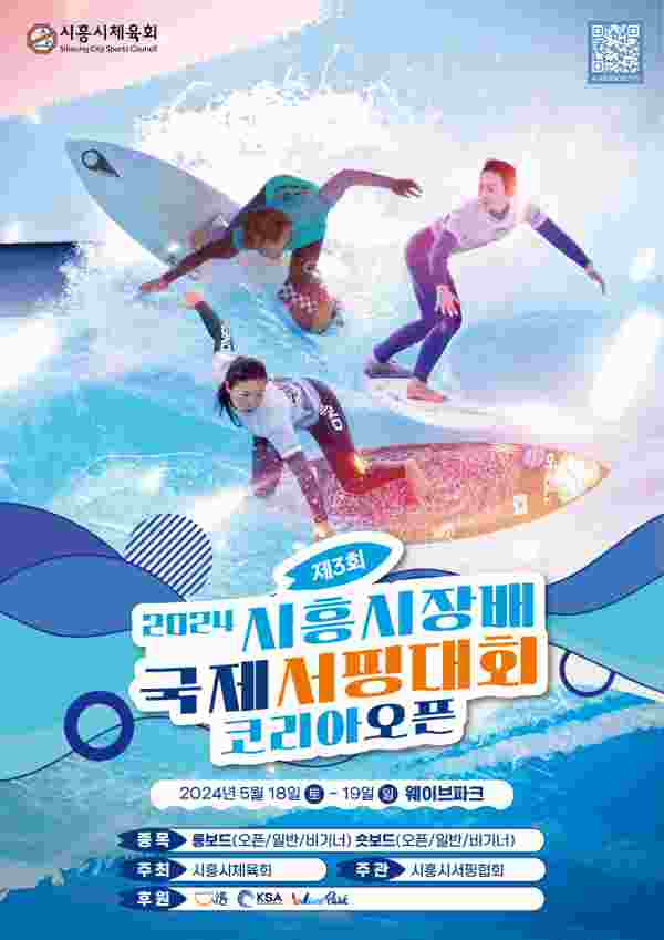 [금요저널] 시흥시체육회가 주최하고 시흥시서핑협회가 주관하는 ‘2024 제3회 시흥시장배 국제서핑대회 코리아오픈’이 거북섬 웨이브파크 인공서핑장에서 오는 5월 18일부터 19일까지 열린다.