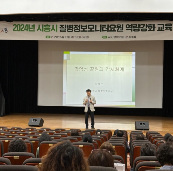 교육은 건국대학교 의과대학 예방의학 김형수 교수를 초청해 진행됐으며 질병정보 모니터 요원의 역할 및 감염병 예방과 신고 방법 등에 대한 강의가 이뤄졌다.