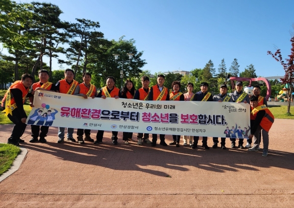 이번 민·관·경 합동점검은 안성시와 안성경찰서 안성시의 청소년유해환경감시단으로 지정된 법무부 청소년 범죄예방위원 안성지구위원회가 참여했으며 대림동산 일대에서 이루어졌다.