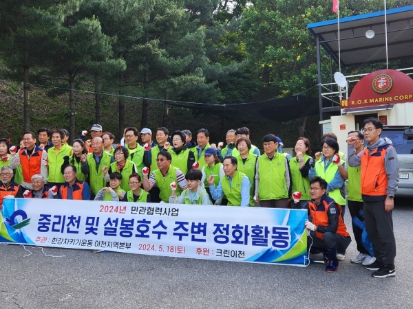이날 정화활동에는 김경희 이천시장과 신용백 한강 본부장, 이현호 전 경기도의원, 홍성경 이천시향토협의회 역대회장과 문석기 크린이천 봉사단 단장 등 60여명이 참여했다.