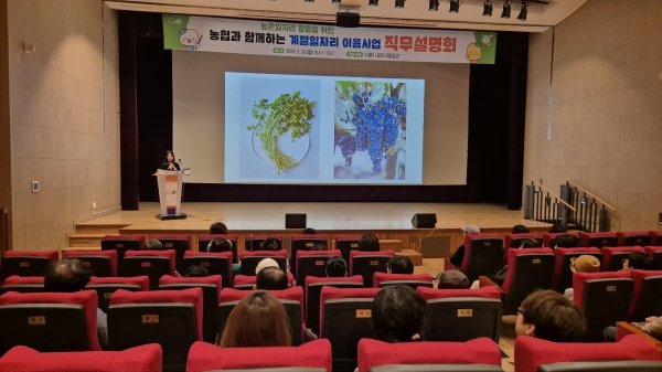 이날 직무설명회에는 지난 5월 5일부터 13일까지 모집한 사전 신청자 70여명 중 40여명이 참석했다. 시흥시지부 이건영 농정지원단장과 북시흥농협 이명종 경제사업 과장은 작물 이해 및 농작업 요령, 참여자의 안전사고 예방과 유의 사항을 중점적으로 설명했다.