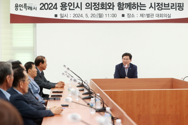 [금요저널] 이상일 용인특례시장은 20일 시청 제1별관 회의실에서 용인시의정회 의장단을 비롯한 회원 및 관계자 약 40여명을 대상으로 시정 브리핑을 열어 시의 발전상과 현안을 설명했다.