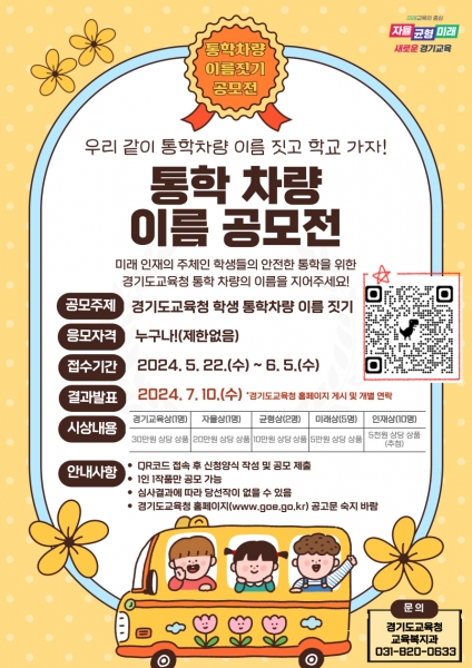 [금요저널] 경기도교육청이 5월 22일부터 6월 5일까지 ‘통학차량 이름짓기’ 공모전을 개최한다.