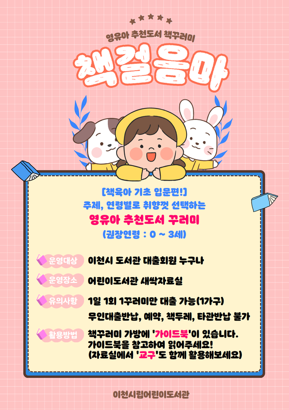 이천시립어린이도서관, 영유아를 위한 추천도서 서비스‘책걸음마’사업 시작