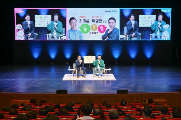 이후 강연이 종료된 후에는 큰별쌤 최태성과 백영현 포천시장과 함께하는 ‘톡톡톡 소통시간’이 이어졌다.