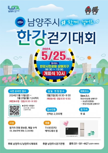 [금요저널] 남양주시와 남양주시체육회가 주최하고 남양주시걷기연맹이 주관하는 ‘2024년 제15회 남양주시 한강 걷기대회’가 오는 25일 한강시민공원 삼패지구 일원에서 개최된다.