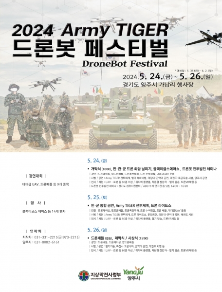 시는 지난 21년부터 군과 함께 육군 드론봇 전투체계를 비롯한 첨단 전투 장비 ·무기 등을 국민에게 소개하고 민·관·군이 드론봇을 비롯한 유·무인 복합전투체계의 실질적 구현과 발전을 도모해 관련 국내 산업 활성화에도 기여하기 위해 ‘드론봇 페스티벌’을 매년 개최하고 있다.