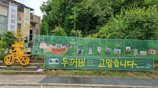 사진 전시회를 주최한 관계자는 “연꽃테마파크 건널목이 4차선으로 넓어진 후 두꺼비들이 도로를 건너다 자동차에 치여 죽는 ‘로드킬’이 많아졌다”며 “더 많은 사람이 두꺼비 살리기에 동참할 수 있도록 이번 사진전을 기획했다”고 밝혔다.