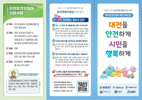 대전시에서는 중대재해처벌법 주요 내용을 담은 홍보지 2만 부를 제작 배포할 예정이다.