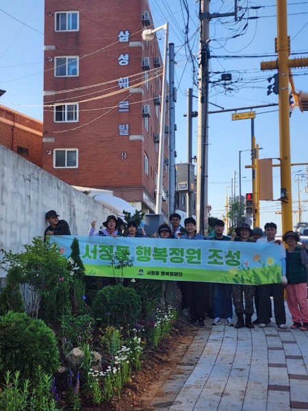 [금요저널] 평택시 서정동 행정복지센터는 지난 23일 서정동 행복정원단 단원들, 서정동 예비군 동대와 함께 서정동 경관 개선을 위해 서정동 삼성쉐르빌 근처에 있는 서정동 557-134번지 일원에 행복정원 6호 조성을 완료했다.