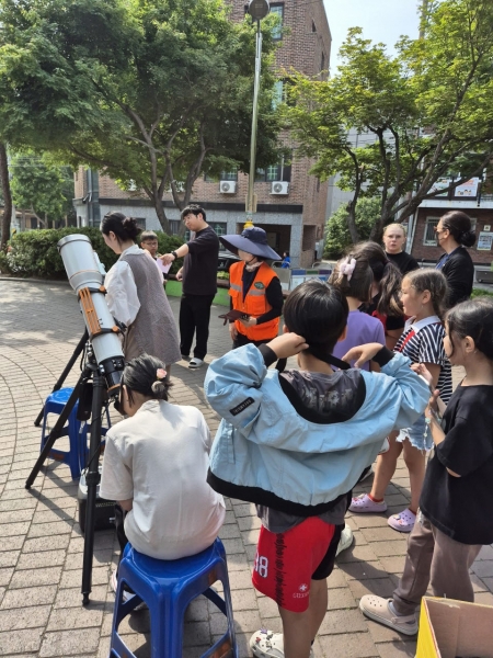 [금요저널] 안성시 안성맞춤랜드에 위치한 안성맞춤천문과학관은 지난 5월 22일 대덕면 내리에 위치한 25호 공원에서 ‘찾아가는 과학관’을 운영, 대덕면 취약계층 및 주민들 대상으로 이동식망원경을 통한 태양 관측과 싸이팝 과학전시체험을 진행했다고 밝혔다.