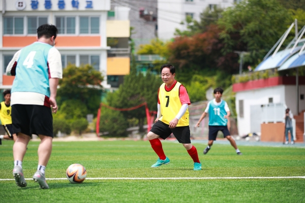주광덕 남양주시장, 광동중 인조 잔디 운동장 개장 기념 축구 경기 참여