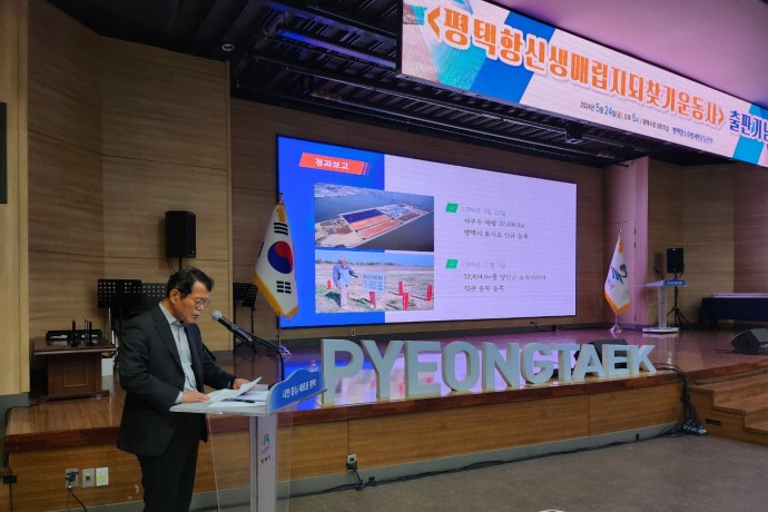 평택항수호범시민운동본부는 지난 24일 오후 5시, 평택시청 대회의실에서 23년간의 평택항 신생매립지 경계분쟁 기록이 담긴 ‘평택항신생매립지되찾기운동사’ 출판기념식을 개최했다.