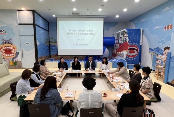 [금요저널] 평택시어린이·사회복지급식관리지원센터는 지난 22일 평택시어린이집연합회 임원진과 센터 팀장들이 함께 모여 센터 사업에 대한 간담회를 국제대학교 컨벤션센터에서 실시했다.