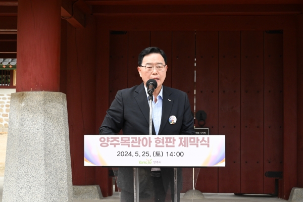 ‘양주목 관아’ 현판 제막은 조선시대 한양 동북부의 중심 양주목의 행정 치소였던 양주목 관아를 대외적으로 알려 ‘경기북부의 본가’및 ‘역사 문화도시’의 위상을 정립하기 위해 기획됐다.