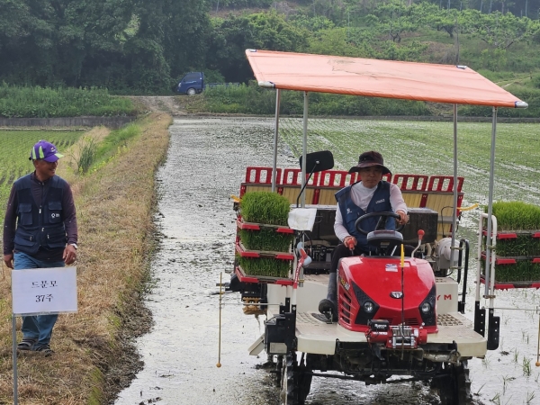 [금요저널] 이천시는 5월 24일 장호원읍에서 벼 재배 농업인과 관계 공무원 등 20여명이 참석한 가운데, 드문 모심기 벼 재배기술 시범사업을 홍보하기 위한 시연회를 개최했다.