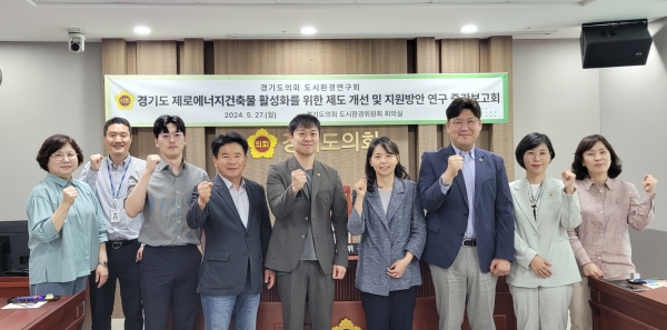 [금요저널] 경기도의회 의원연구단체인 ‘도시환경연구회’가 27일 도시환경위원회 회의실에서 ‘경기도 제로에너지건축물 활성화를 위한 제도 개선 및 지원방안 연구’에 대한 정책연구용역 중간보고회를 개최했다.