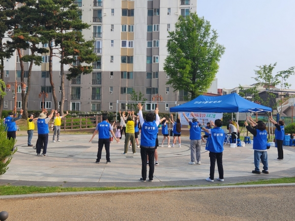 [금요저널] 안성시 안성1동 체육회에서는 ‘2024년 생활체육 활성화 프로그램’ 사업의 일환으로 지난 24일 오후 5시에 낙원역사공원에서 ‘기체조반’을 열었다.
