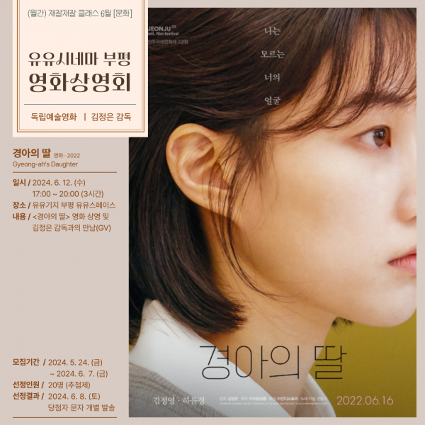 구체적으로 유유시네마 부평에서 ’경아의 딸‘ 영화상영회을 열고 참여자들은 독립영화를 매개로 한 영화 문화 활동 및 감독과의 만남을 진행할 예정이다.