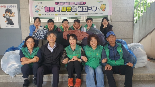 [금요저널] 시흥시 신천동 행정복지센터는 지난 27일 탄소중립 생활문화 실천 및 지역 사랑 기부에 동참하고자 헌 옷 등 생활 재활용품을 모아 신천동 새마을지도자협의회와 새마을부녀회에 전달했다.