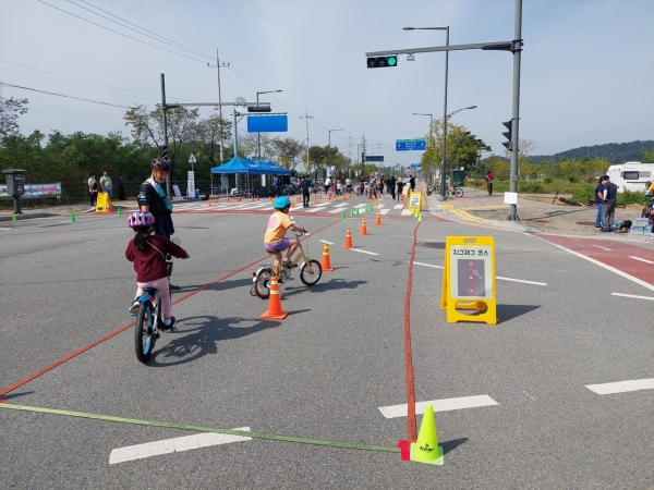 자전거 체험교육은 올바른 자전거 통행 방법, 출발과 정지, 안전 표지판 숙지 등의 이론교육 진행 후 자전거 타기 실습교육도 체험할 수 있는 프로그램을 진행한다.