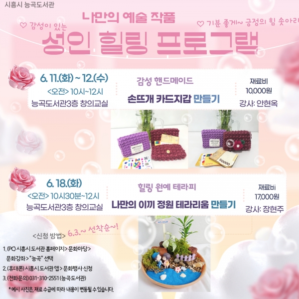[금요저널] 시흥시 능곡도서관은 오는 6월에 ‘예술’을 주제로 한 성인 치유 강좌를 운영한다.