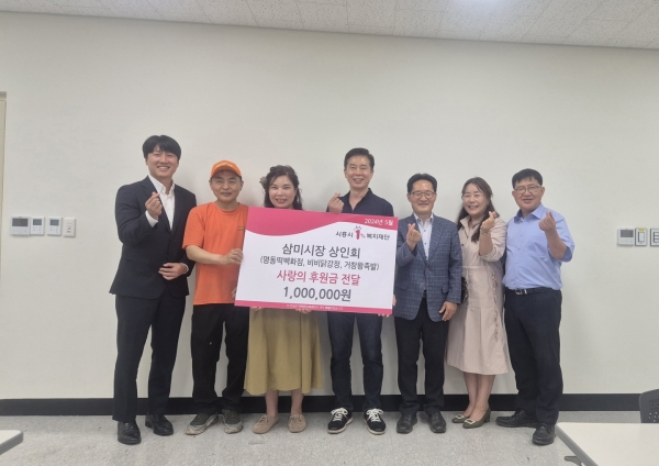 [금요저널] 시흥을 대표하는 전통시장인 ‘삼미시장’의 상인회가 지난 29일 대야·신천권의 어려운 이웃을 돕기 위해 사랑의 후원금 100만원을 전달했다.